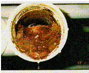 Grease and oils that were liquid in sink wash water of 90 to 140 degrees, that return to a solid as temperatures drop, while flowing down stream.